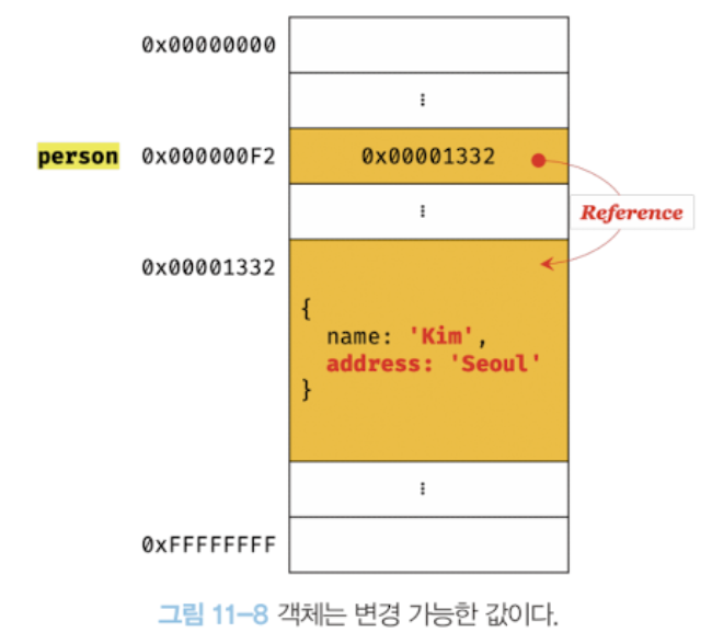 객체(참조) 타입의 값은 변경 가능한 값이다.