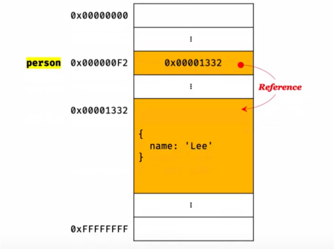 값 자체를 메모리 공간에 할당하는 원시 값과는 달리 객체는 메모리 공간에 참조 값을 저장한다.