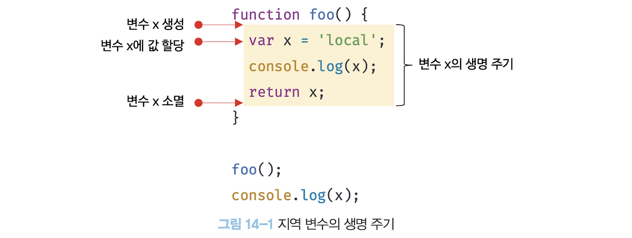 함수 내부에서 선언된 지역 변수는 함수가 호출되면 생성되고 함수가 종료되면 소멸한다.