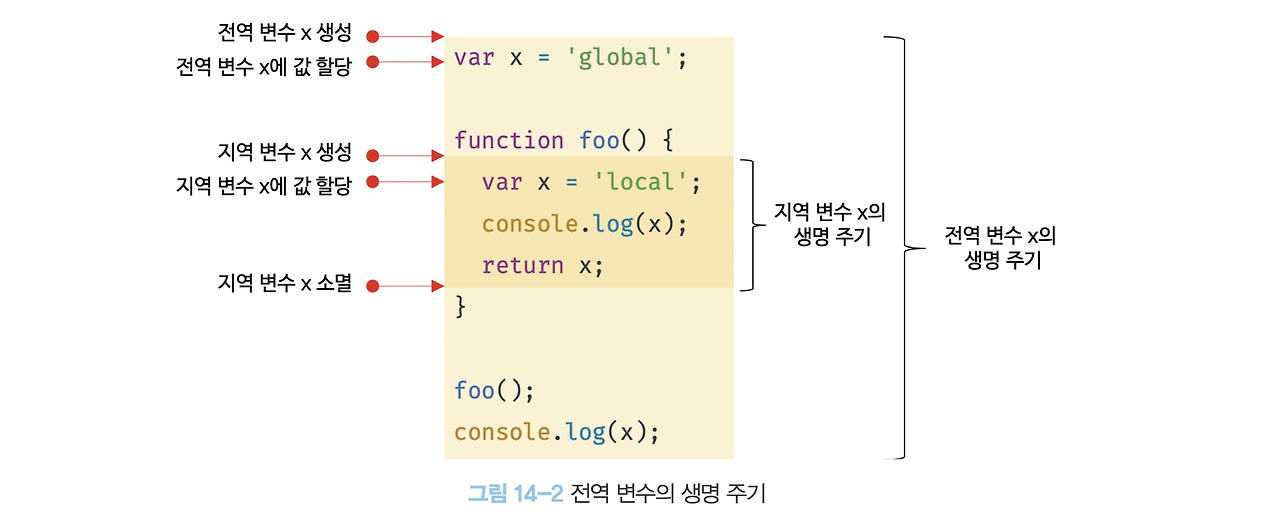 var 키워드로 선언한 전역변수의 생명 주기는 전역 객체의 생명 주기와 일치한다.